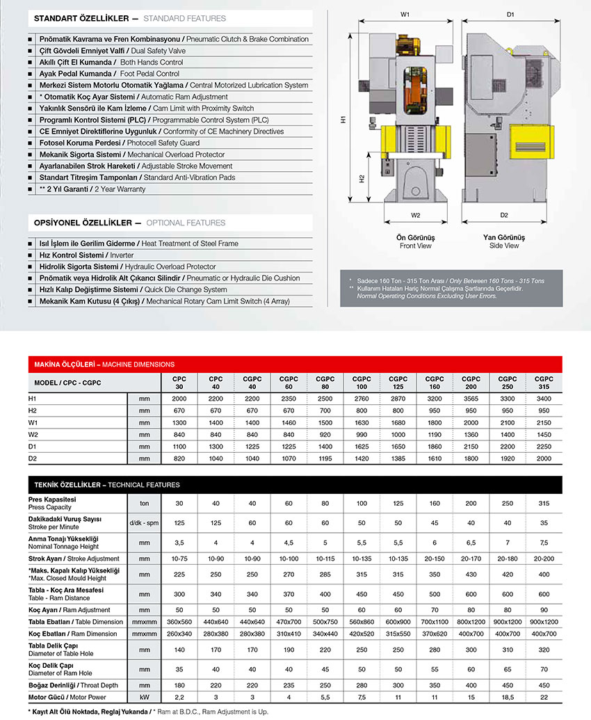 C TIPI 4 KIZAKLI EKSANTRIK PRESLER