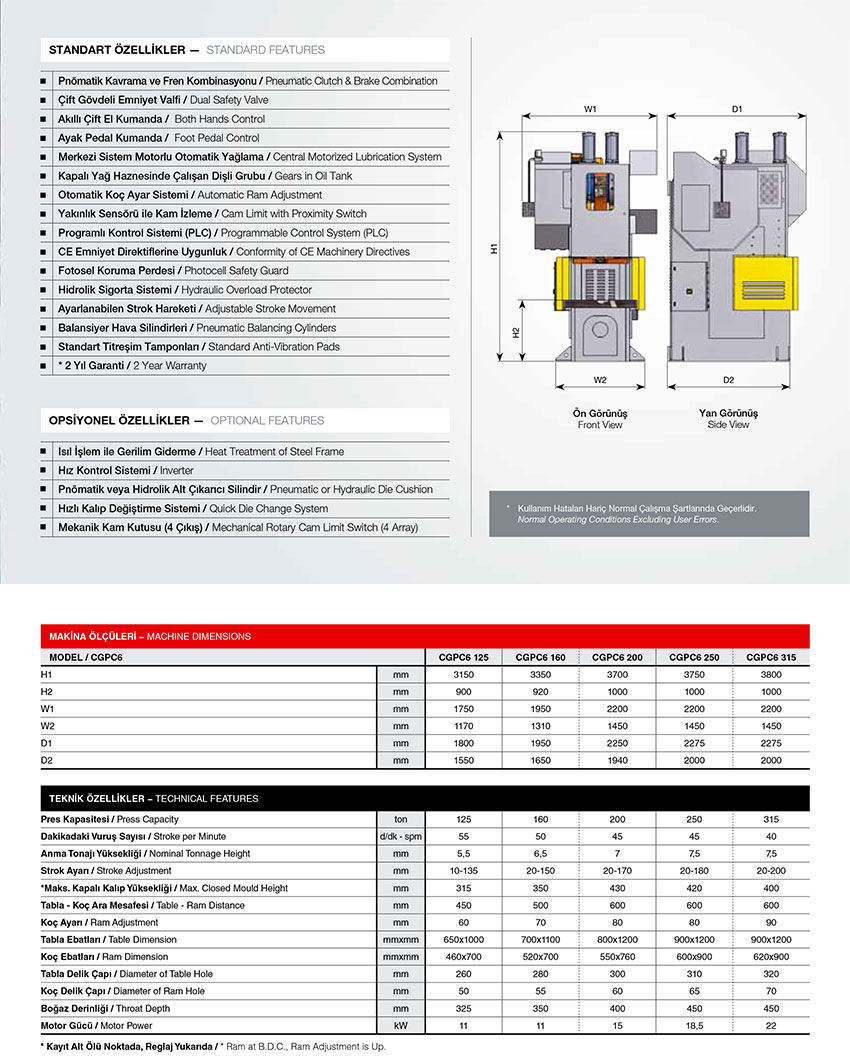 C TIPI 6 KIZAKLI EKSANTRIK PRESLER
