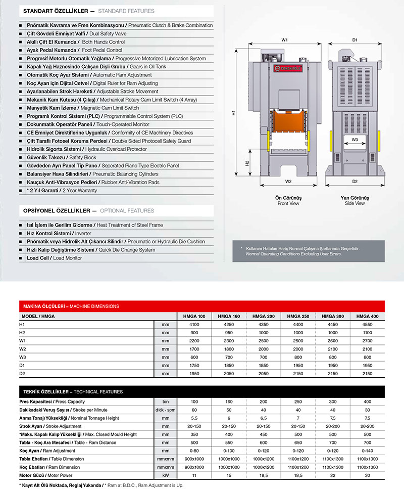 H TIPI YÜKSEK HIZLI EKSANTRIK PRESLER